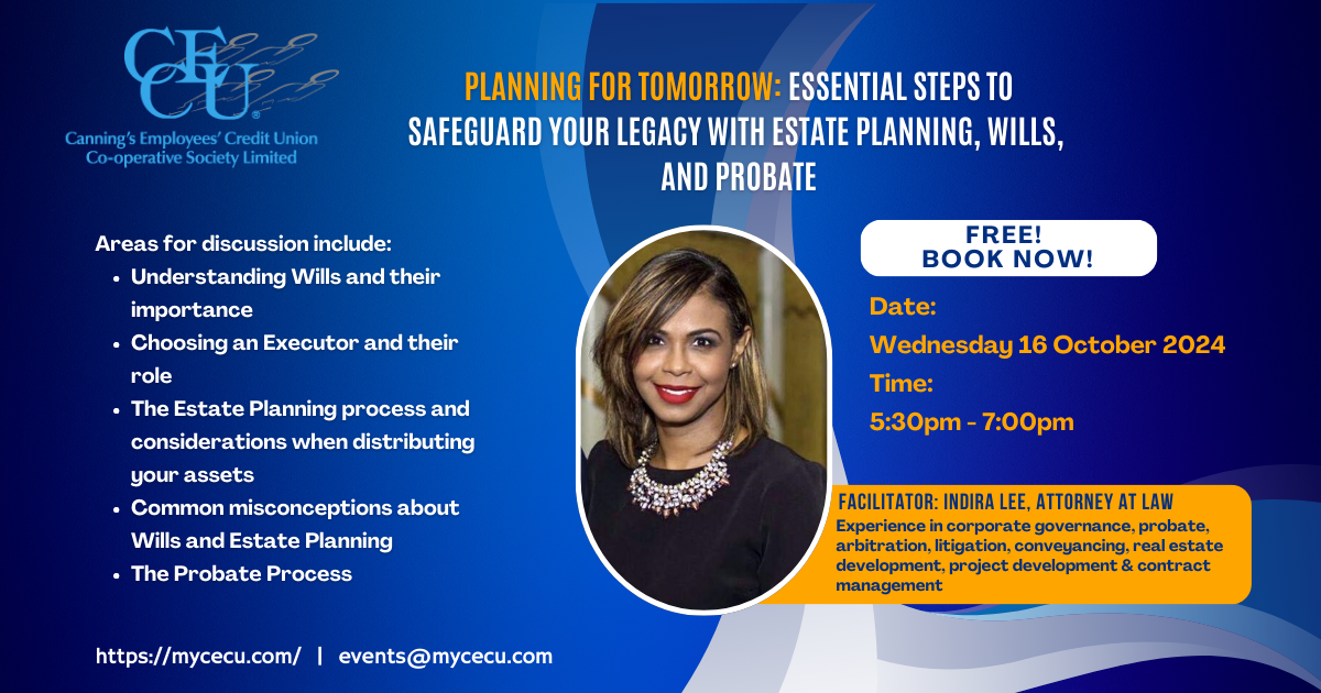 Financial Literacy Workshop & SEA Awards 2024September 17, 2024Children’s Christmas Party 2024January 2, 2025 Published by Canning's Employees' Credit Union Co-Operative Society Ltd on October 17, 2024 Wills & Probate Webinar (Recording) Wills & Probate Webinar (Presentation) Share0 Canning's Employees' Credit Union Co-Operative Society Ltd Related postsOctober 15, 2025General Health Webinar – Prevention vs. CureRead moreOctober 1, 2025Financial Literacy Workshop & SEA Awards 2025Read moreJuly 17, 2025CECU Care Webinar 2025Read more Leave a Reply Cancel replyYour email address will not be published. Required fields are marked *Comment * Name * Email * Website Save my name, email, and website in this browser for the next time I comment.
